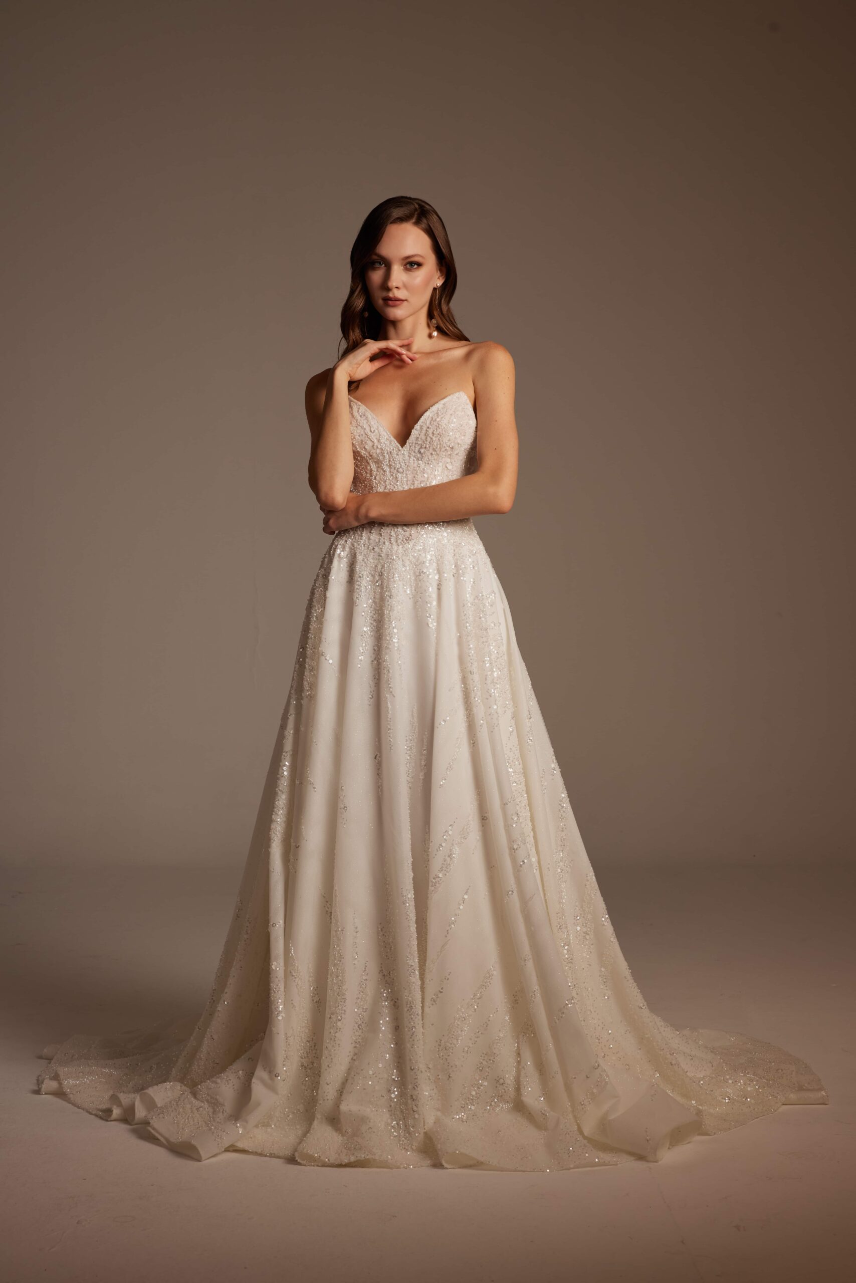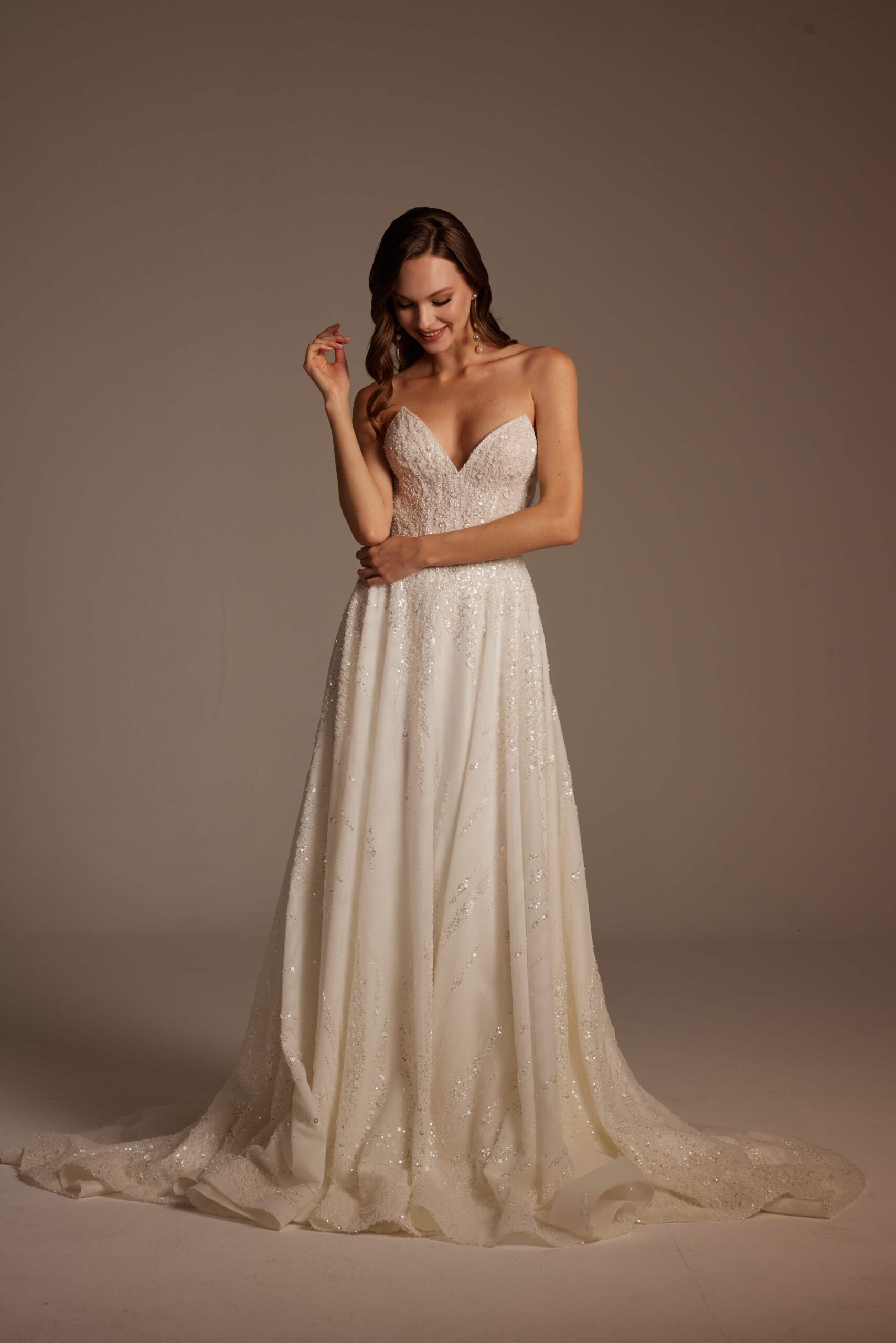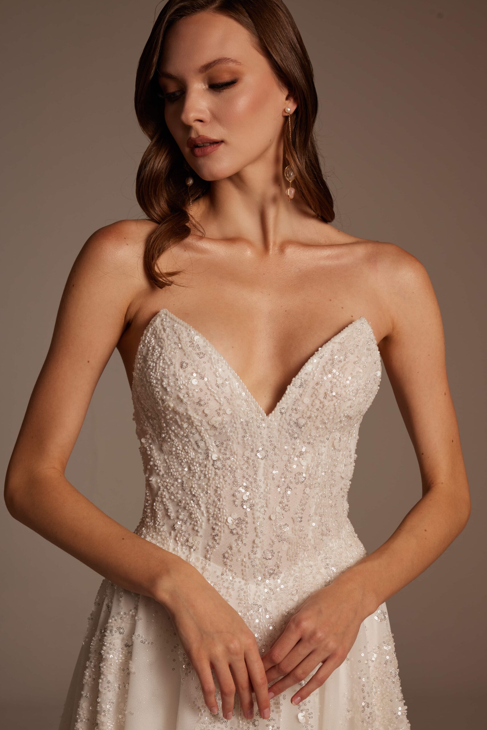 Işıltıyı seven ancak abartıdan uzak durmak isteyen gelinler için tasarlanan Beyza Model; özellikle İstanbul gelinlik arayışında olan, Kadıköy gelinlik butiklerinde modern ve zarif tasarımlar denemek isteyen gelinler için güçlü bir seçenektir.