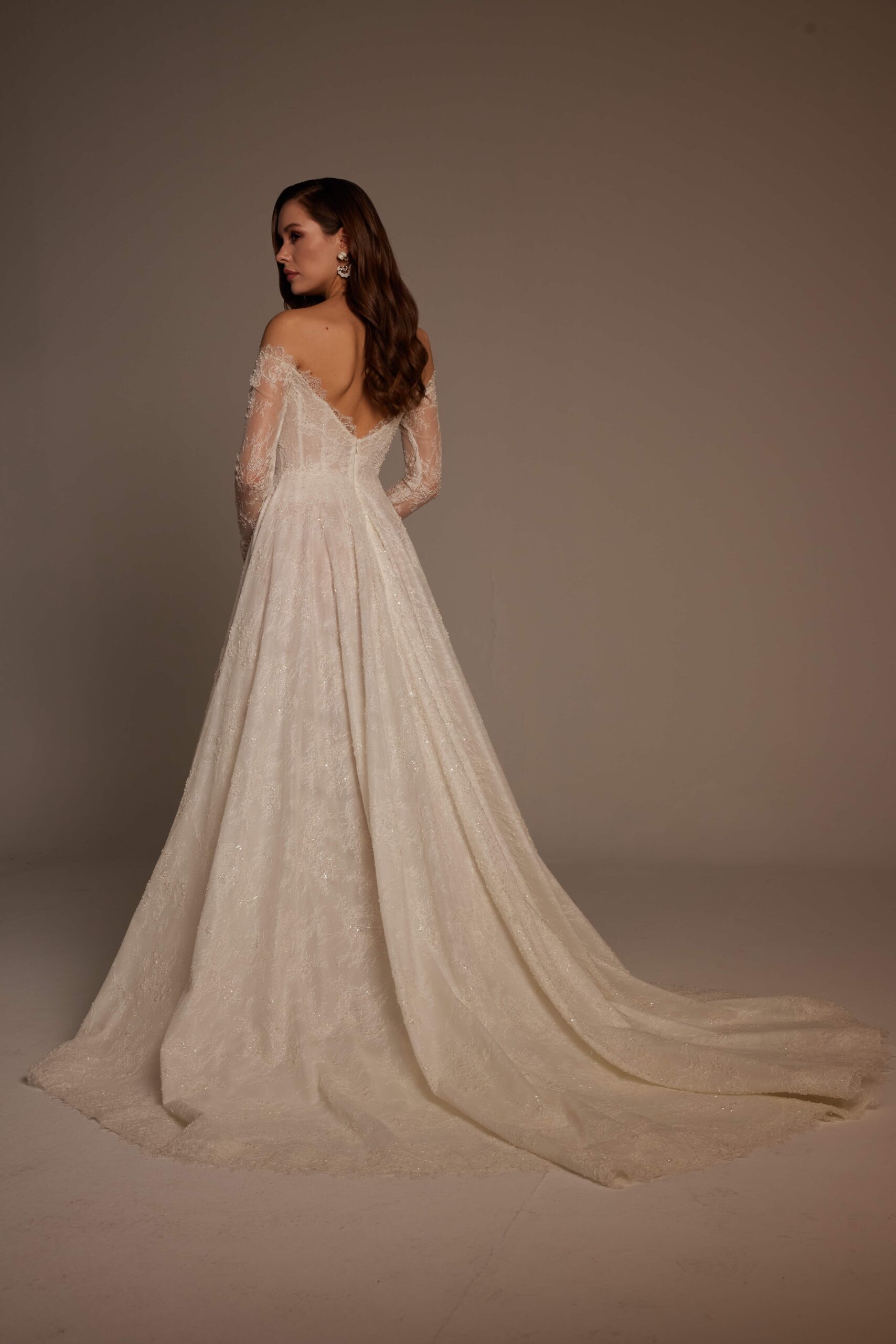 Arka tasarımda açık sırt detayı ve zarif korsaj yapısı dikkat çeker. Bu detaylar, Merve Model’e klasik gelinlik zarafetini korurken modern bir dokunuş kazandırır. Uzun etek ve hafif kuyruk formu, gelinliğin asil duruşunu tamamlar.